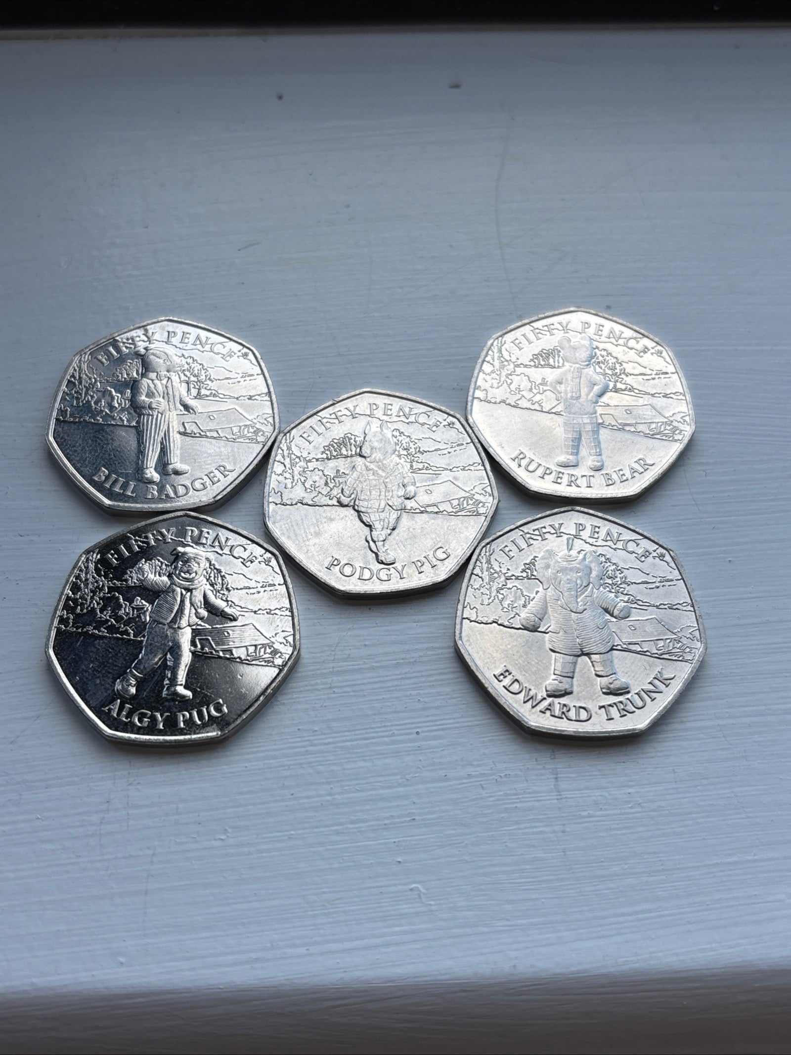 Rupert the Bear 100th Anniversary 50p Uncirculated Coins Full Set